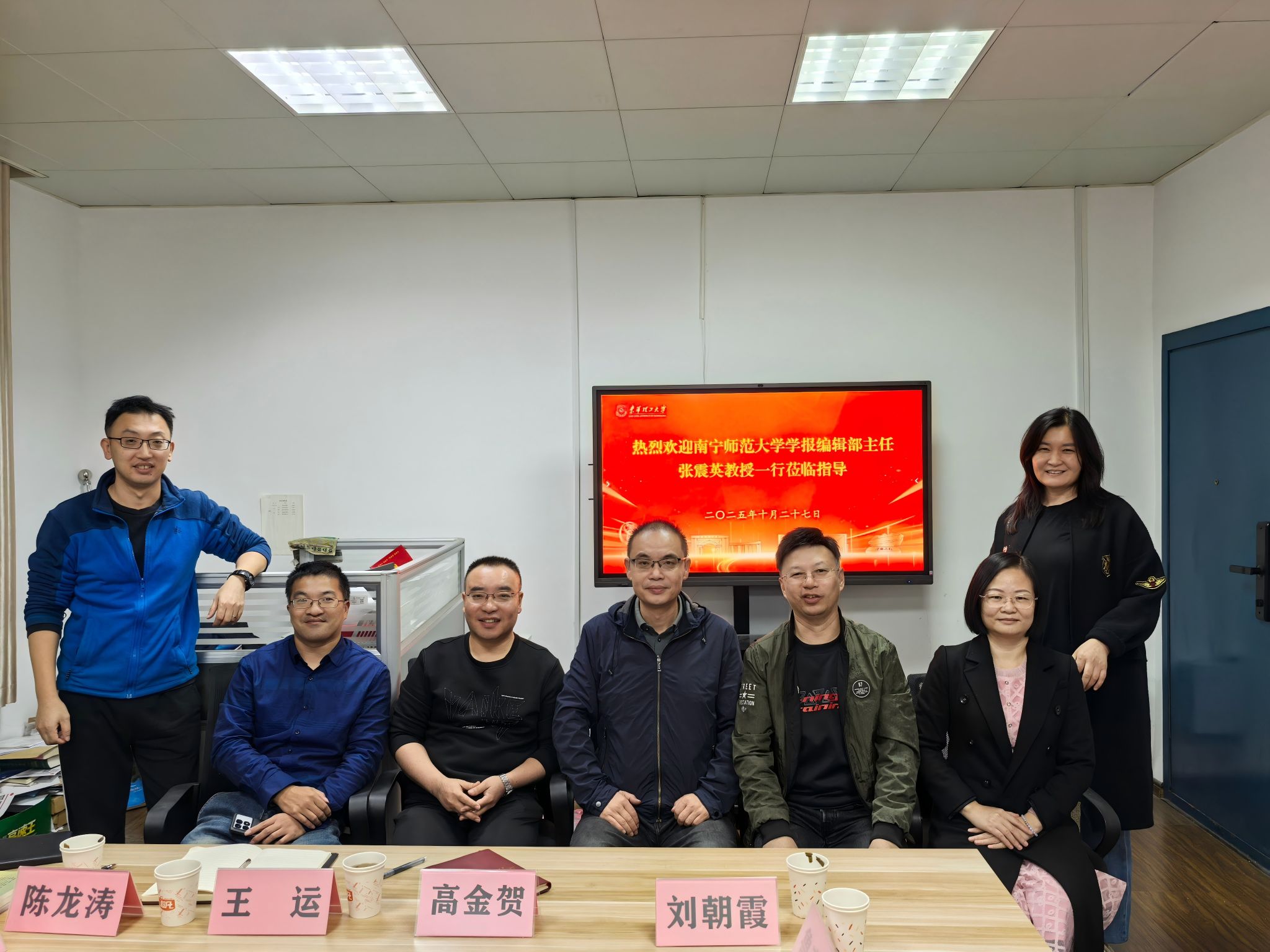 2025年10月27日上午,学报编辑部主任张震英、副主任覃凌波、自然科学版执行副主编许春慧一行前往江西科技师范大学期刊社开展业务交流。期刊社社长、《职教论坛》主编肖称萍主持座谈会,期刊社副社长、《江西科技师范大学学报》主编夏焕堂、期刊社副社长吴启琳、《江西科技师范大学学报》编辑部主任张祥卉、《地方文化研究》编辑部主任刘丽、《职教论坛》责编孙帅帅、美术学院副教授王子文等参加座谈。肖称萍介绍了期刊社的机构设置、办刊历史以及三种期刊的基本情况,特别是《职教论坛》的历史渊源、刊物特色及发展预期。夏焕堂主编、刘丽主任分别介绍了《江西科技师范大学学报》和《地方文化研究》的发展现状、面临问题及解决途径。张震英介绍了南宁师范大学的办刊情况及学报编辑部负责编辑出版的三种期刊的状况,分享了提升办刊层次过程中的做法以及《广西教育学院学报》更名的情况。张震英对《职教论坛》创刊四十年以来取得的成绩表示钦佩,认为《职教论坛》办刊历史悠久,编辑部人员齐整,刊物底蕴深厚、特色鲜明,已建设成为被广泛认可的职业教育领域学术重镇。张震英表示要认真学习、虚心求教,为打造好职业教育专栏和今后办好职业教育专刊汲取经验。张震英仔细咨询了《地方文化研究》的更名历程、栏目设置及组约稿方式,对该刊物在传承和弘扬中华优秀传统文化方面做出的贡献表示赞赏。江西科技师范大学期刊社负责编辑出版《江西科技师范大学学报》《职教论坛》《地方文化研究》三种期刊,其中《职教论坛》为全国中文核心期刊、中国人文社会科学期刊AMI综合评价核心期刊、RCCSE中国权威学术期刊、复印报刊资源重要转载来源期刊。《地方文化研究》为中国人文社会科学期刊AMI综合评价扩展期刊。