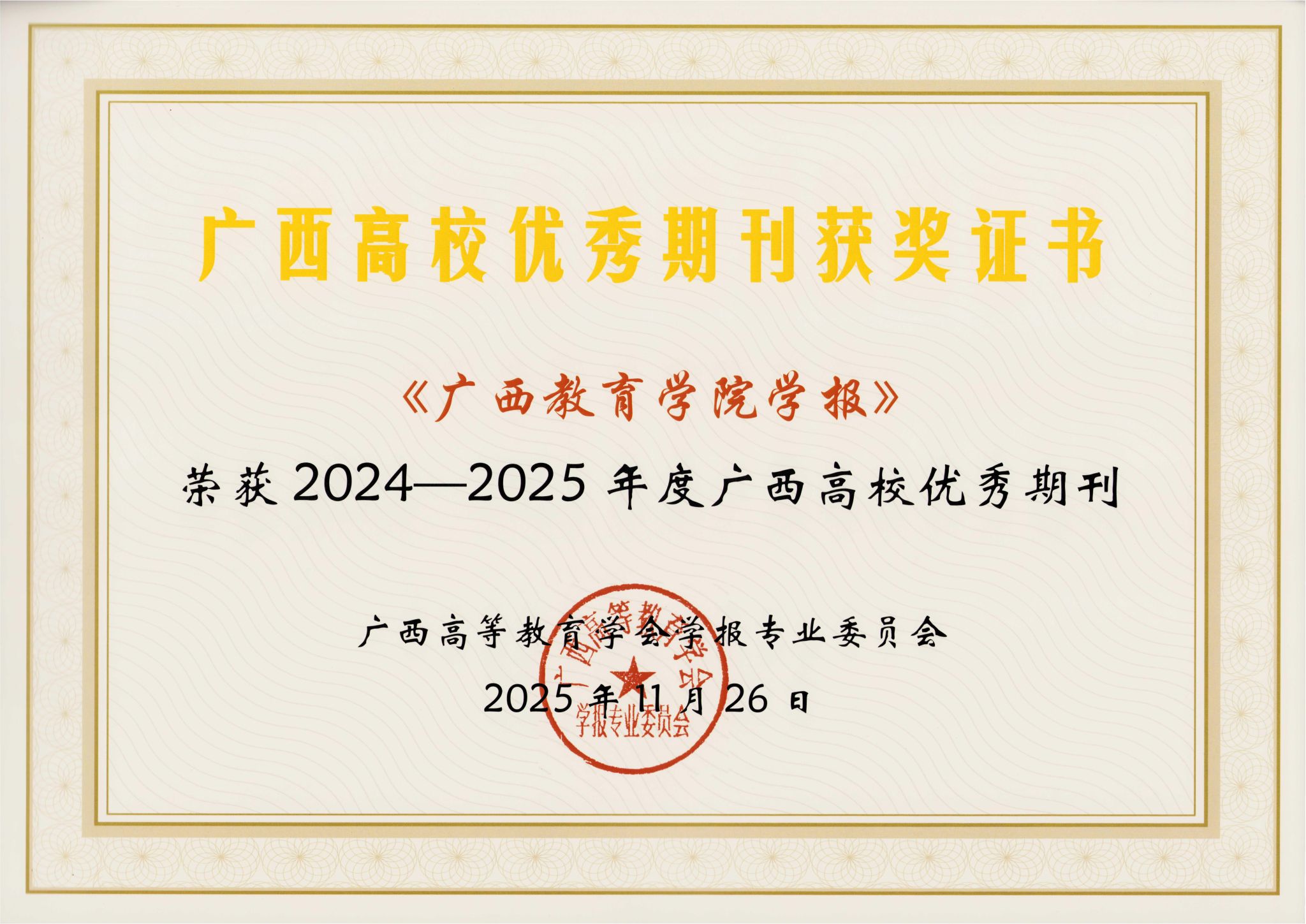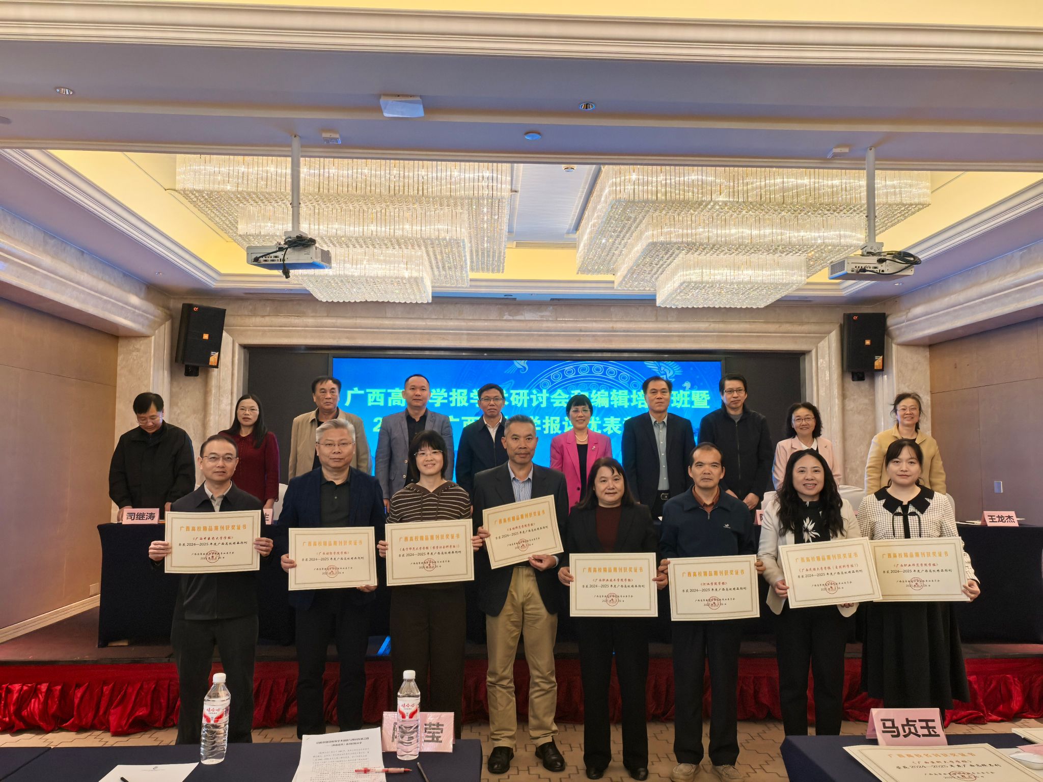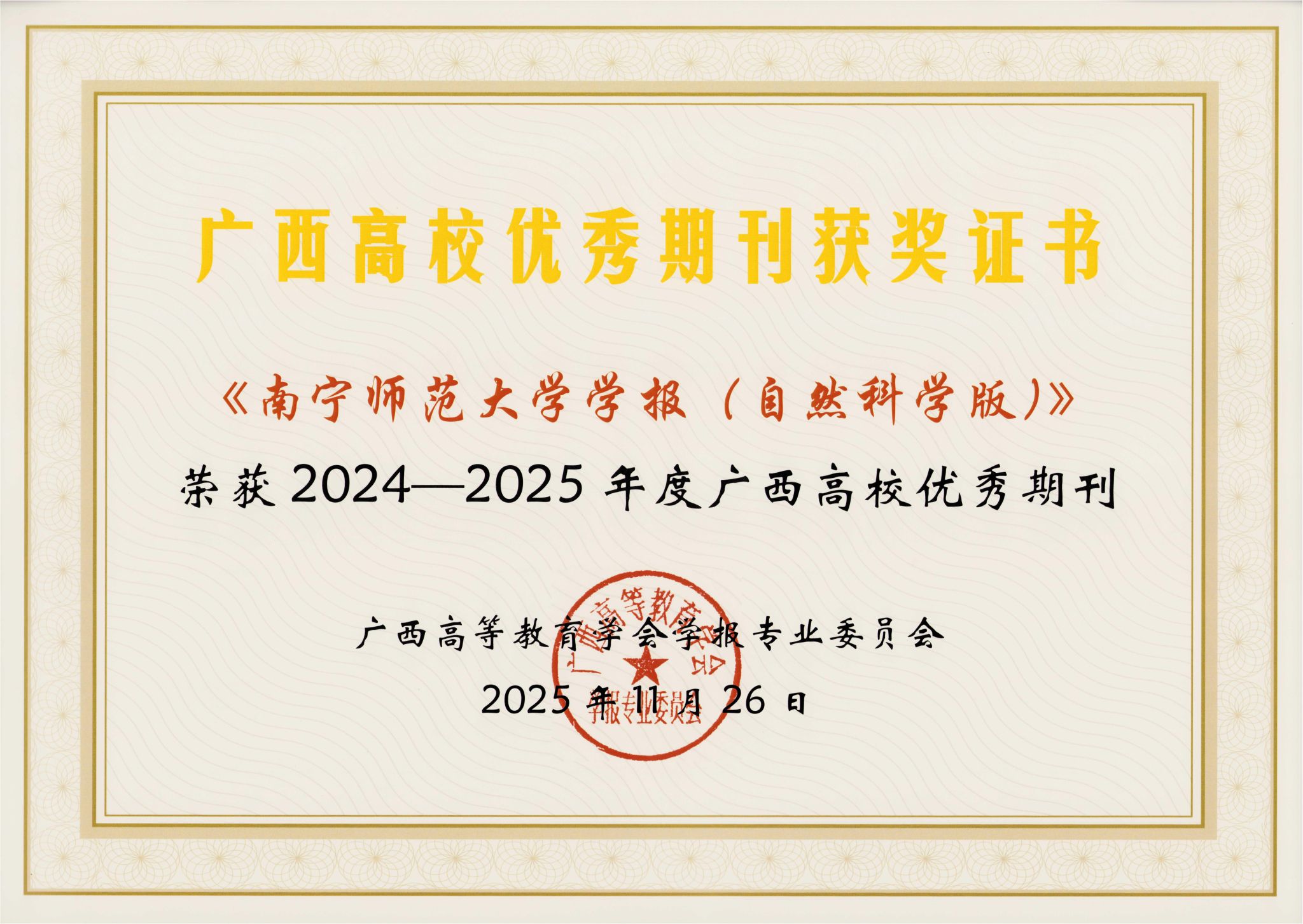 2025年11月26日,由广西高等教育学会学报专业委员会举办的“广西高校学报2025年学术研讨会暨广西高校学报评优表彰大会”在崇左市举行。会议分为开幕式、颁奖、主题发言、分组讨论等环节,学报编辑部主任张震英、自然科学版执行副主编许春慧、实习编辑赵明参会。在本次评优活动中,学报编辑部喜获多项奖励,其中《南宁师范大学学报(哲学社会科学版)》被评为2024-2025年度广西高校精品期刊,《南宁师范大学学报(自然科学版)》《广西教育学院学报》被评为2024-2025年度广西高校优秀期刊,张震英被评为2025年度广西高校学报优秀主编,许春慧、玉璐被评为2025年度广西高校学报优秀编辑。